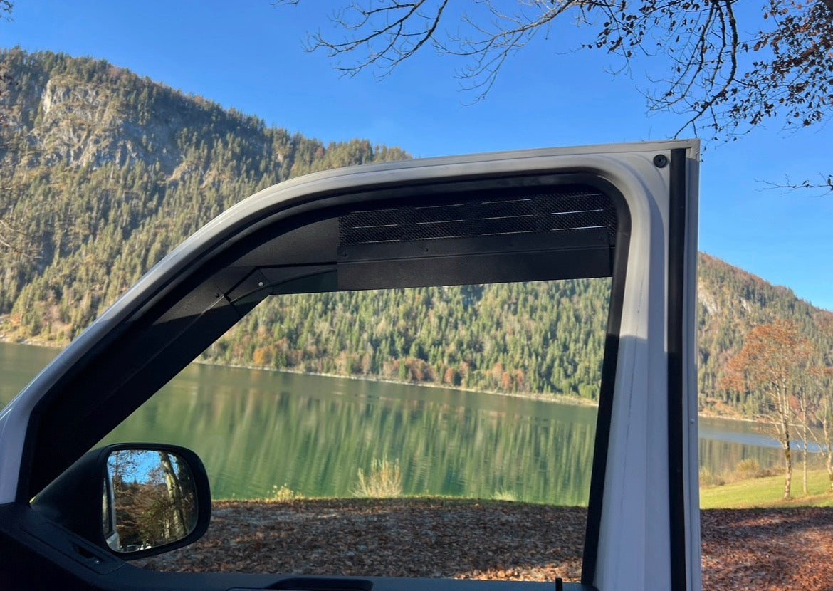 Erleben Sie erholsame Nächte in Ihrem Pössl Campster. Unsere MB Luxury Design Lüftungsgitter bieten die perfekte Kombination aus Frischluft und Sicherheit – die clevere Wahl für anspruchsvolle Vanlifer. Ob beim Camping-Abenteuer in den Bergen oder beim Übernachten im Van am Meer: Mit diesem Set bleibt Ihr Campster belüftet und die Mücken draußen.