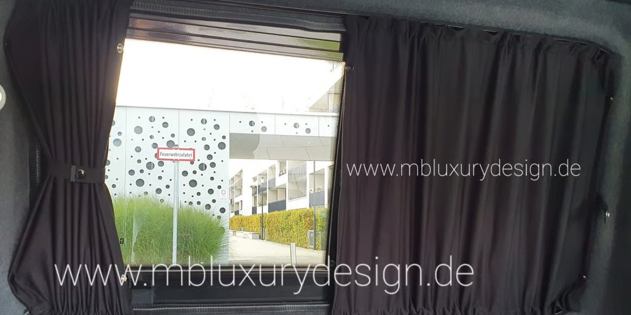 - 6 x Vorhänge doppellagig für 3 Fenster (hinter Fahrer, Beifahrer und Heck)